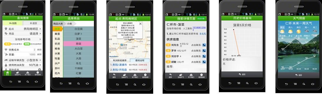 3.2013年曾桢团队设计开发贵州省农贸通农产品智能手机系统,在国内首先实现手机端农产品交易路线规划,交易搭配,气象预警等功能,改产品获得气象局发明奖项。