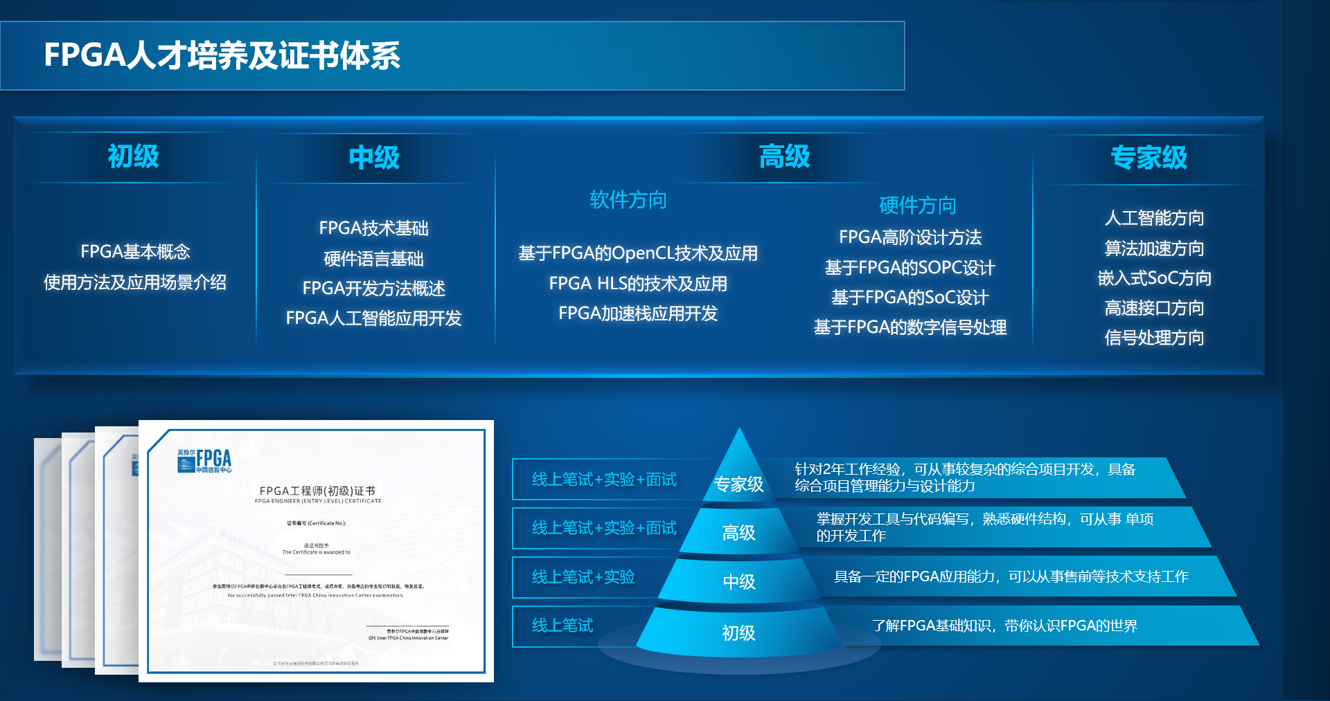 英特尔FPGA中国创新中心资深讲师徐栋玲,从4个方面为3044永利集团有限公司的同学展开讲解,分别是“芯时代与FPGA”、“如何学习FPGA技术”、“FPGA人才发展现状”、“英特尔FPGA中国创新中心”。徐老师从时代背景出发,为员工介绍了FPGA技术在各个领域的应用;又从技术角度出发,为员工深入讲解了如何学习FPGA技术;然后从国内FPGA人才发展现状入手,为员工分析了FPGA与人工智能方向的就业前景;最后,徐老师介绍了英特尔FPGA中国创新中心,使员工了解到创新中心的职能和FPGA人才培养体系。