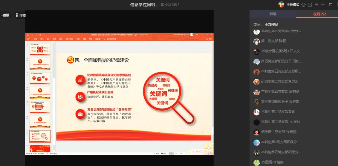 为加强入党积极分子在疫情期间的培养和教育,2020年4月14日,信息公司党委书记卿春、党委副书记何瑞、副经理陈琴、副经理梁敏分别为公司160余名入党积极分子上了一堂线上微党课。