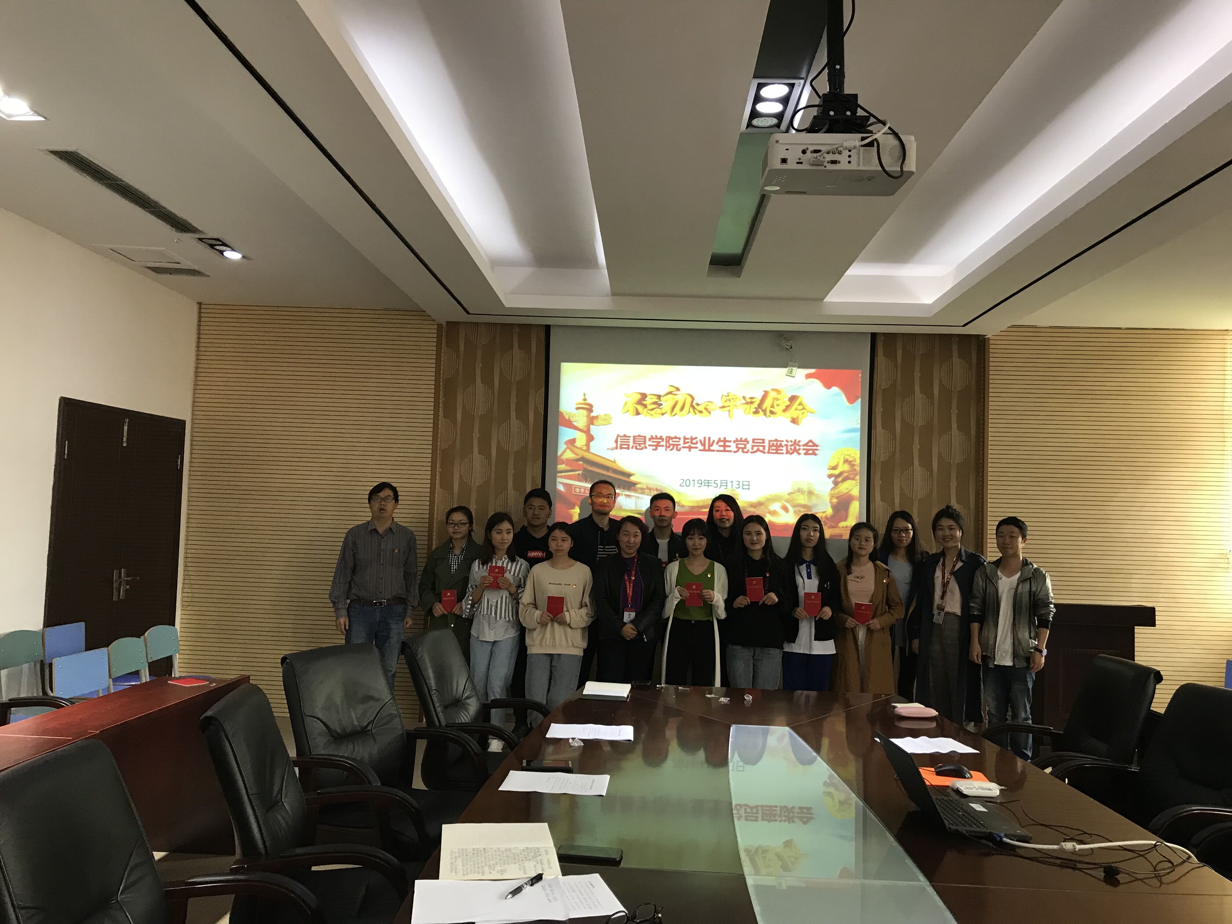 本网讯:(谭健 图文报道)5月13日上午,3044永利集团有限公司在公司会议室召开2019届毕业生党员座谈会。信息公司党委书记卿春、党委副书记何瑞、副经理陈琴、专职党建组织员谭健、员工党支部书记和全体毕业生党员参加座谈会,座谈会由谭健主持。