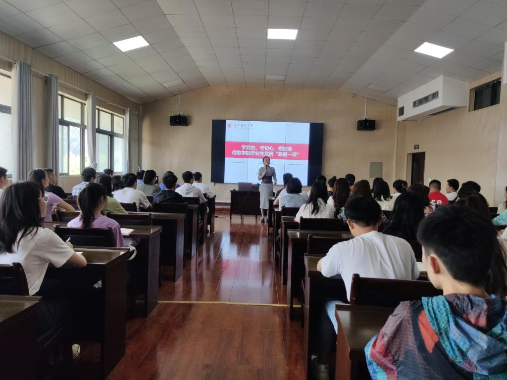 首先,卿春以“学党史、守初心、担使命”为题给毕业生党员上了一堂生动的党课。卿春从学党史的重要意义出发教育毕业生党员要从党史学习中深刻领悟共产党人的初心使命,牢记党员身份,今后在工作岗位上积极发挥党员先锋模范作用,为建设社会主义现代化国家做出应有贡献。随后,卿春带领大家一起重温入党誓词,铭记庄严的承诺,再次接受心灵的洗礼。最后谭健就毕业生党员组织关系转接相关事宜进行了专题培训。