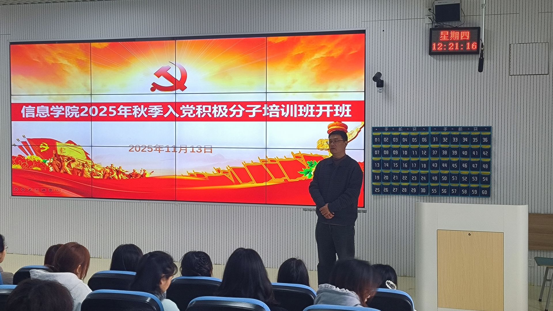 在开班典礼上,詹伟发表了动员讲话。他着重指出,本次培训是强化党的理论武装、提高政治素养的重要环节。同时,对学员们提出了三点殷切期望:一是要筑牢理论根基,端正入党动机。在扎实学习专业知识的同时,系统研习党章党史,精准把握党和国家的发展目标,潜心钻研党规党纪和校规校纪,清晰划定校园学习生活中的底线、红线、高压线,持续提升自身政治素养;二是要合理统筹规划,平衡好专业与党课学习的关系。做到两者兼顾、相互促进,既要在专业领域勤学苦练,也要在党课学习中锤炼党性,实现知识素养与思想境界的同步提升;三是要强化行动自觉,以实际行动向党组织积极靠拢。不仅要在思想层面高度认同党的理论与宗旨,还要在行动上严格践行党员标准,养成优良的学习和生活习惯,在学风建设中发挥引领作用,更要主动向党内的优秀同学和先进榜样学习、看齐,以切实行动争取早日成为一名合格的共产党员。