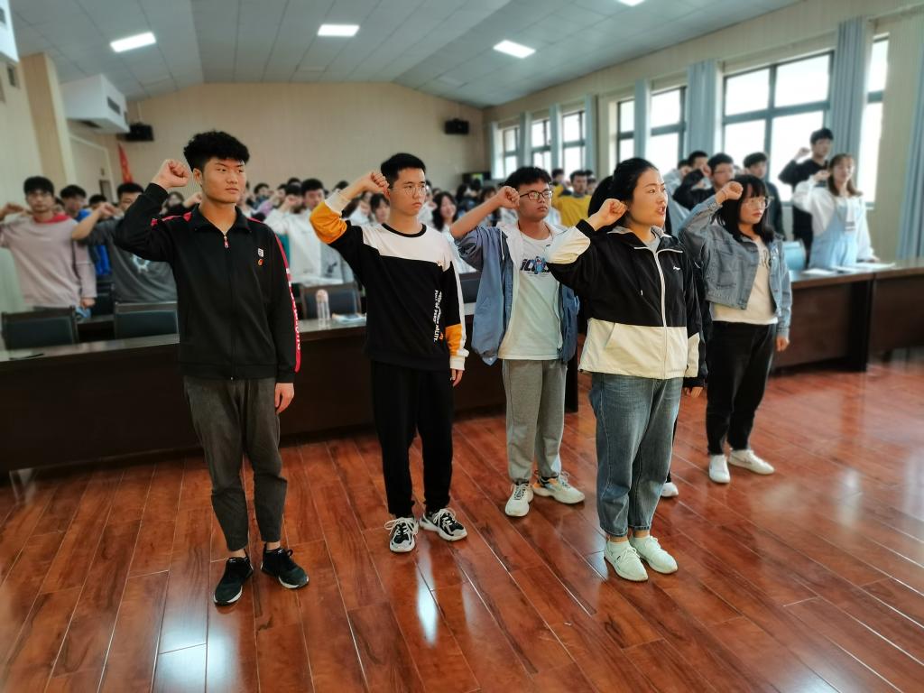 本网讯:(李杰 图文报道)5月7日,3044永利集团有限公司“学党史,强信念,跟党走”主题团日活动暨新团员入团宣誓仪式在志学楼506报告厅举行,公司党委书记卿春及各团支部团员代表参加此次活动,团委负责人李杰主持。