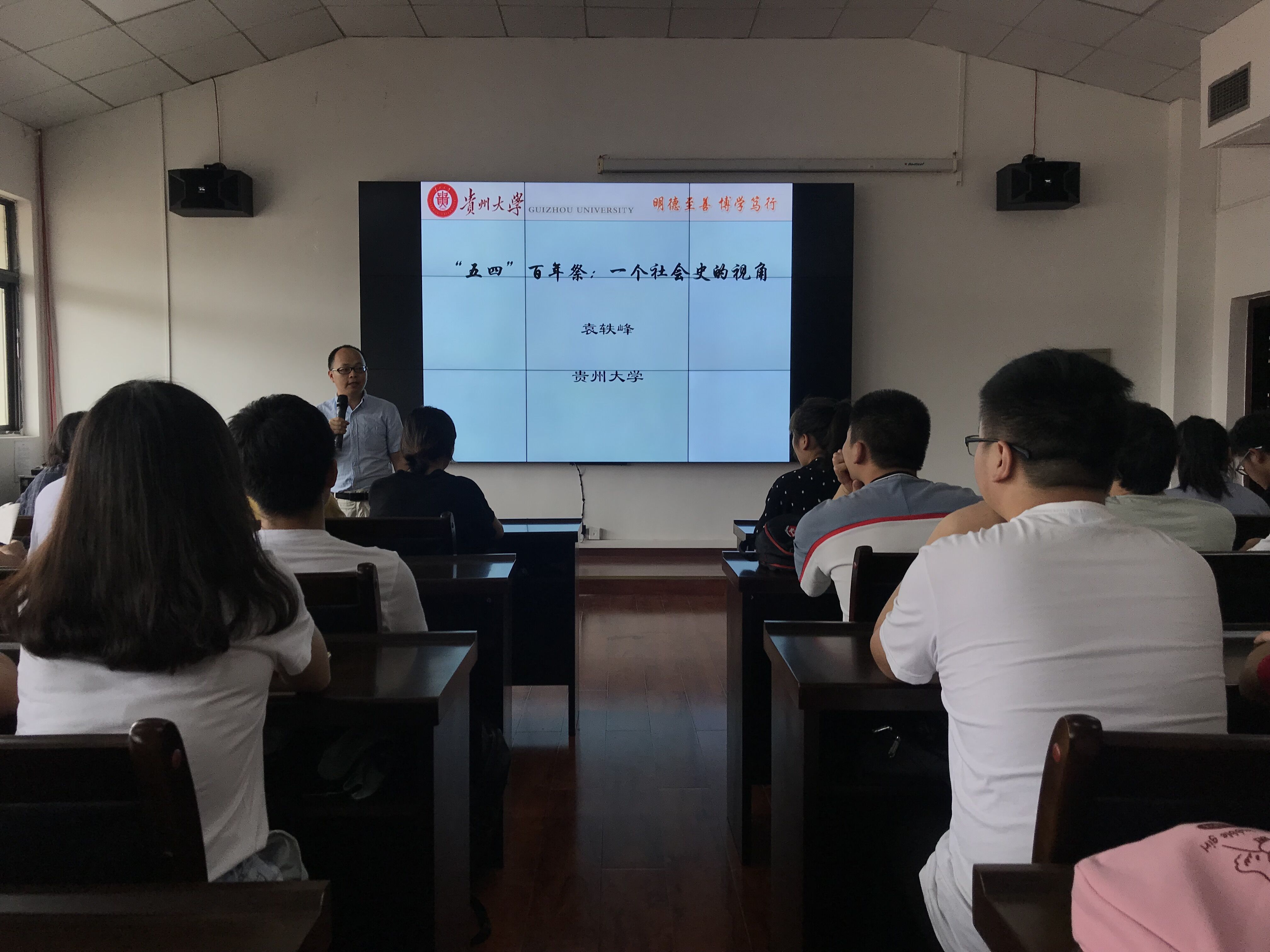 本网讯:(李杰 报道|摄影 黄意)为纪念五四运动100周年和建国70周年,进一步弘扬“爱国、进步、民主、科学”的五四精神,激励广大青年员工刻苦学习、奋发有为,6月5日,由3044永利集团有限公司举办的第一届文化艺术节暨纪念五四运动100周年系列活动之“五四百年祭,一个社会史的视角”专题讲座在志学楼506报告厅举行。主讲嘉宾为贵州大学历史与民族文化公司袁铁峰副教授,3044永利集团有限公司120余名员工参加了本次讲座。