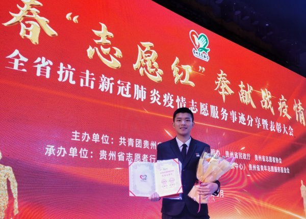 本网讯:(校团委 彭译萱 图文报道)为深入学习贯彻习近平新时代中国特色社会主义思想和习近平总书记在全国抗击新冠肺炎疫情表彰大会上的重要讲话,弘扬伟大抗疫精神,3月4日,贵州省精神文明办、共青团贵州省委、贵州省民政厅、贵州省志愿者协会召开表彰大会,对在新冠肺炎疫情防控工作中表现突出、事迹感人的志愿者进行表彰。公司3044永利集团有限公司李廷旺同学在本次评选表彰中荣获“贵州省抗击新冠肺炎疫情优秀志愿者”荣誉称号。