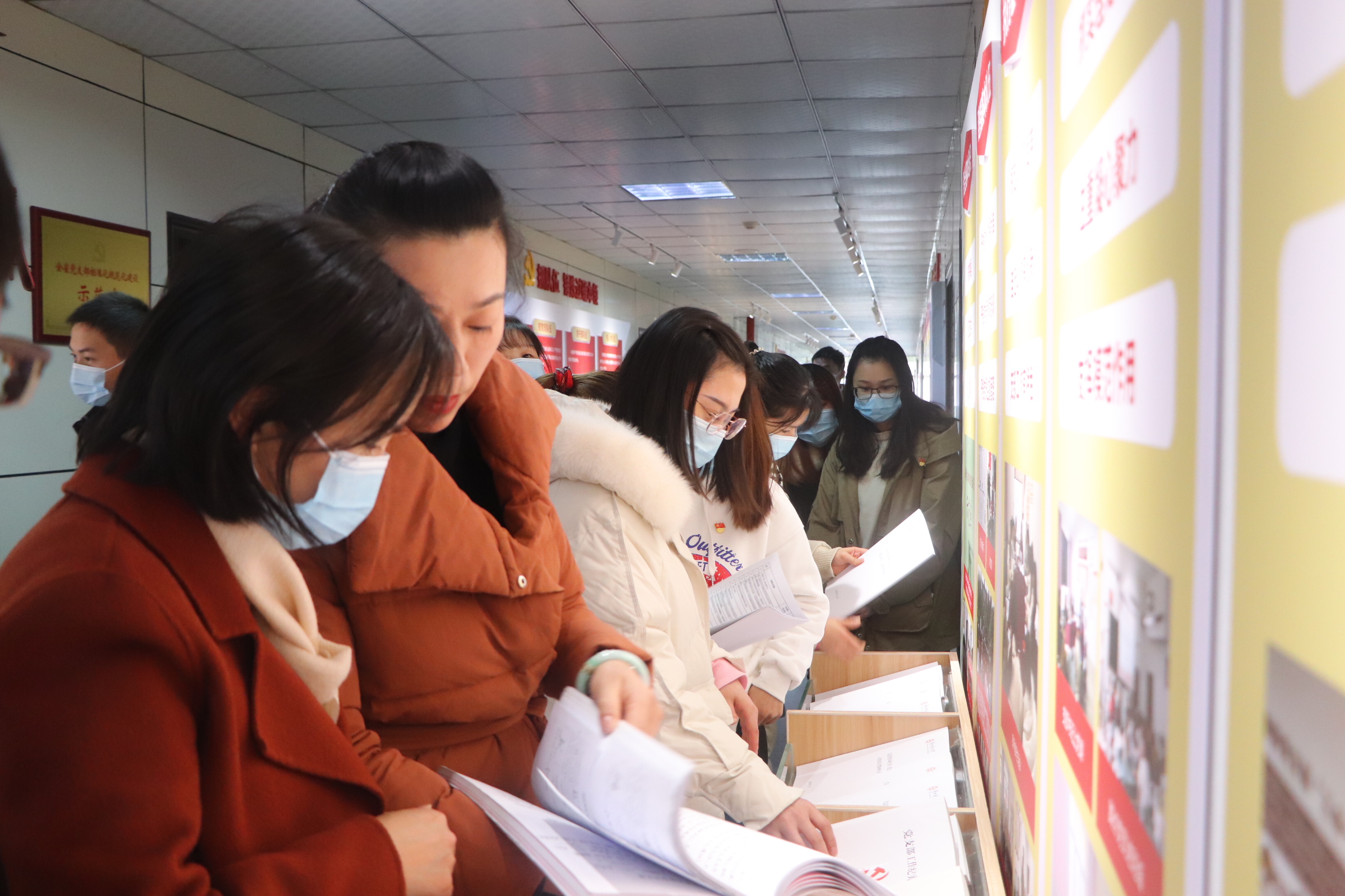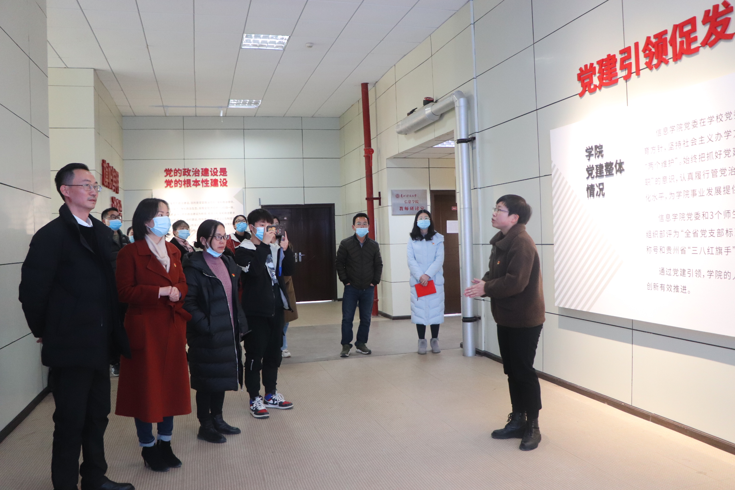 3044永利集团有限公司副科级专职组织员、本科生第一党支部书记赵里红带领大家参观了3044永利集团有限公司的党建文化长廊,介绍了3044永利集团有限公司的自己研发的智慧党建管理系统、党建特色活动和品牌建设情况,并重点就获得“贵州省党支部标准化规范化建设示范点”资料进行介绍讲解。