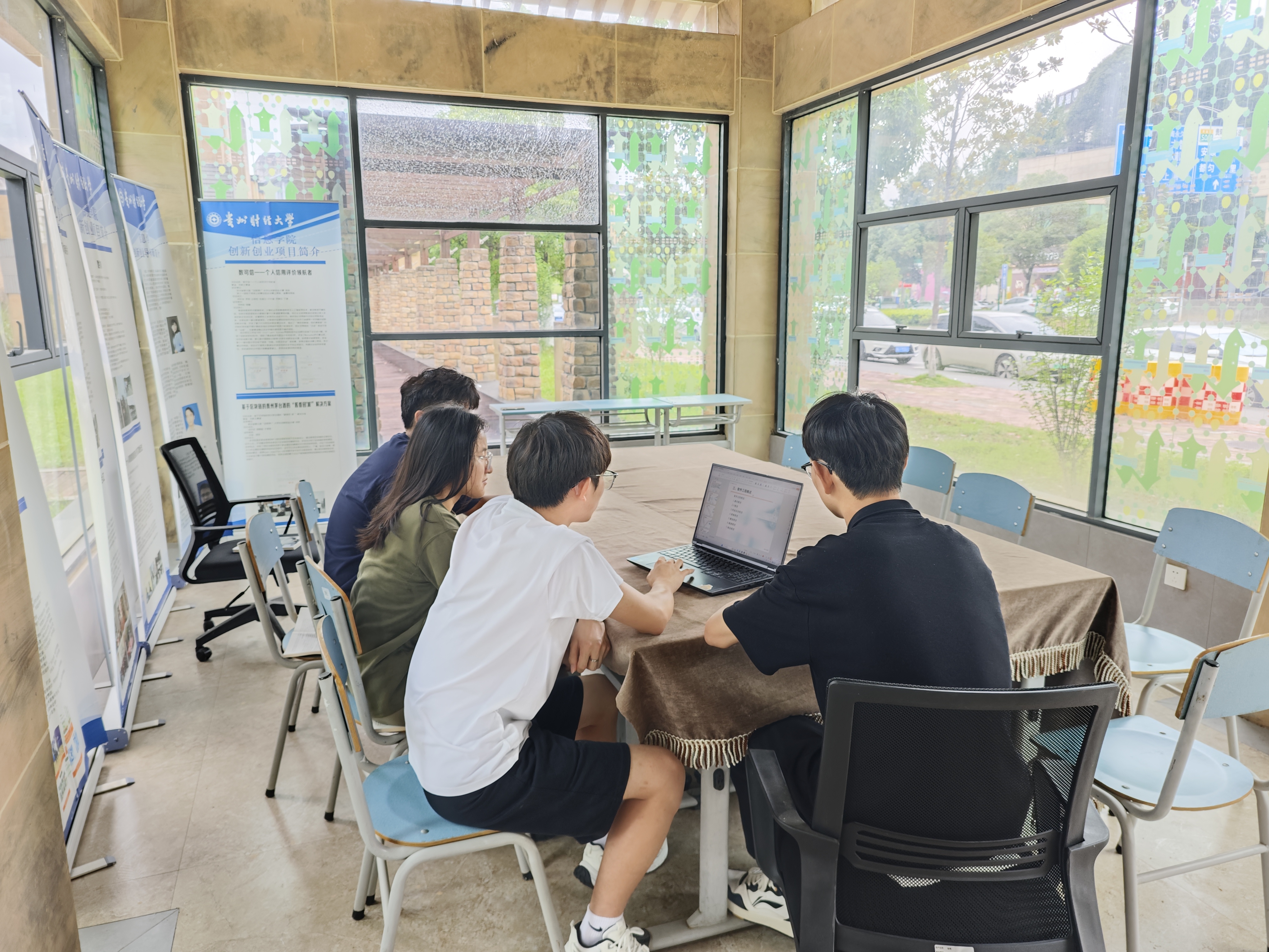 本网讯:(张骏 图文报道)2025年6月29日,为深入推进老员工创新创业教育,提升“中国国际老员工创新大赛”项目质量,本次入围国创赛省赛的团队在创业园9号玻璃进行项目的研究和打磨,力求在接下来的比赛中获得好的成绩,旨在通过项目式学习培养同学们的创新能力和实践精神。