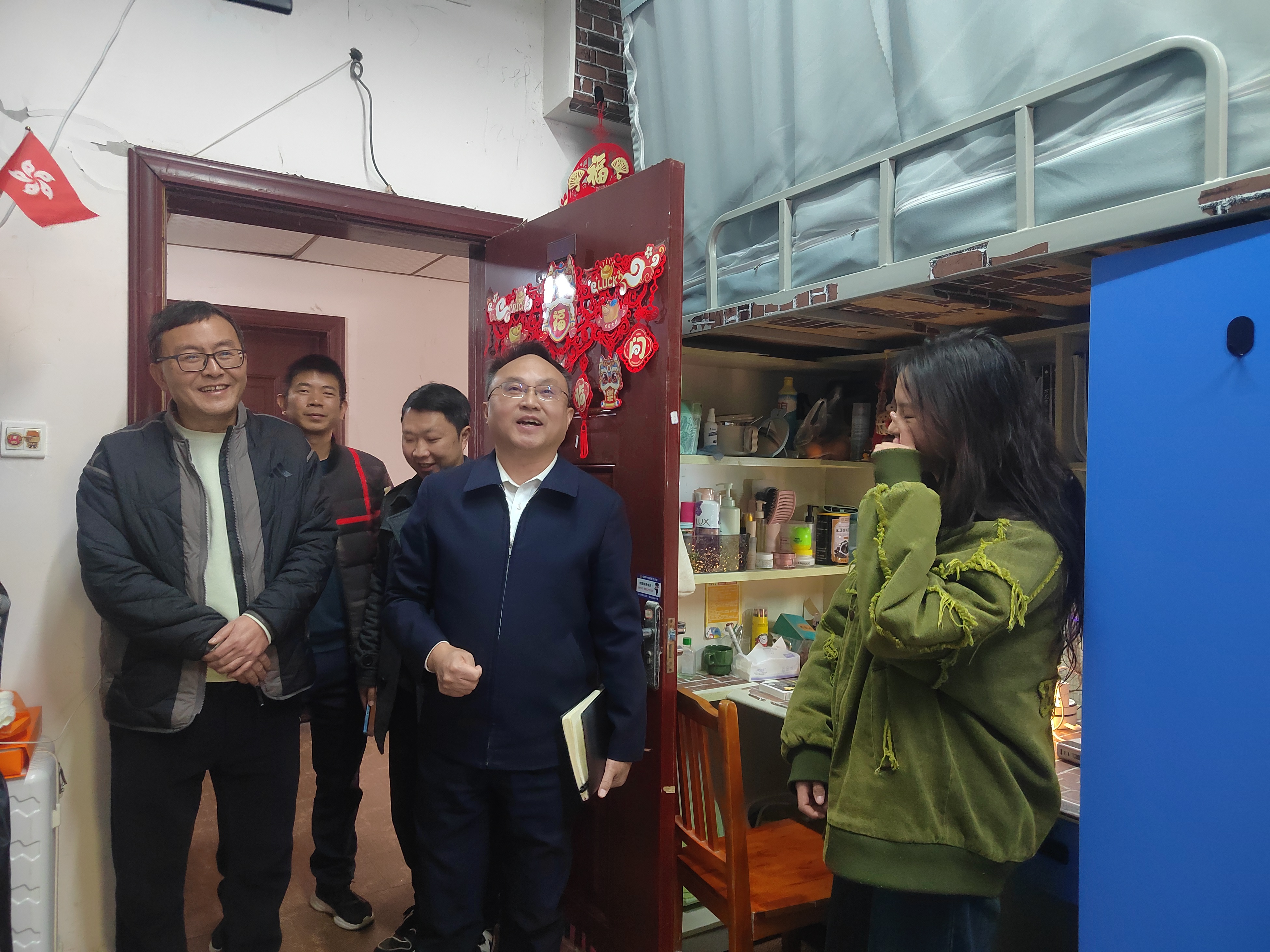 李烨深入员工宿舍,仔细察看住宿环境、设施配备以及消防安全情况,与同学们亲切交谈,询问大家的学业进展、生活状况,听取同学们的意见和建议,并叮嘱同学们要合理安排时间,注重身心健康,营造积极向上的宿舍文化氛围。