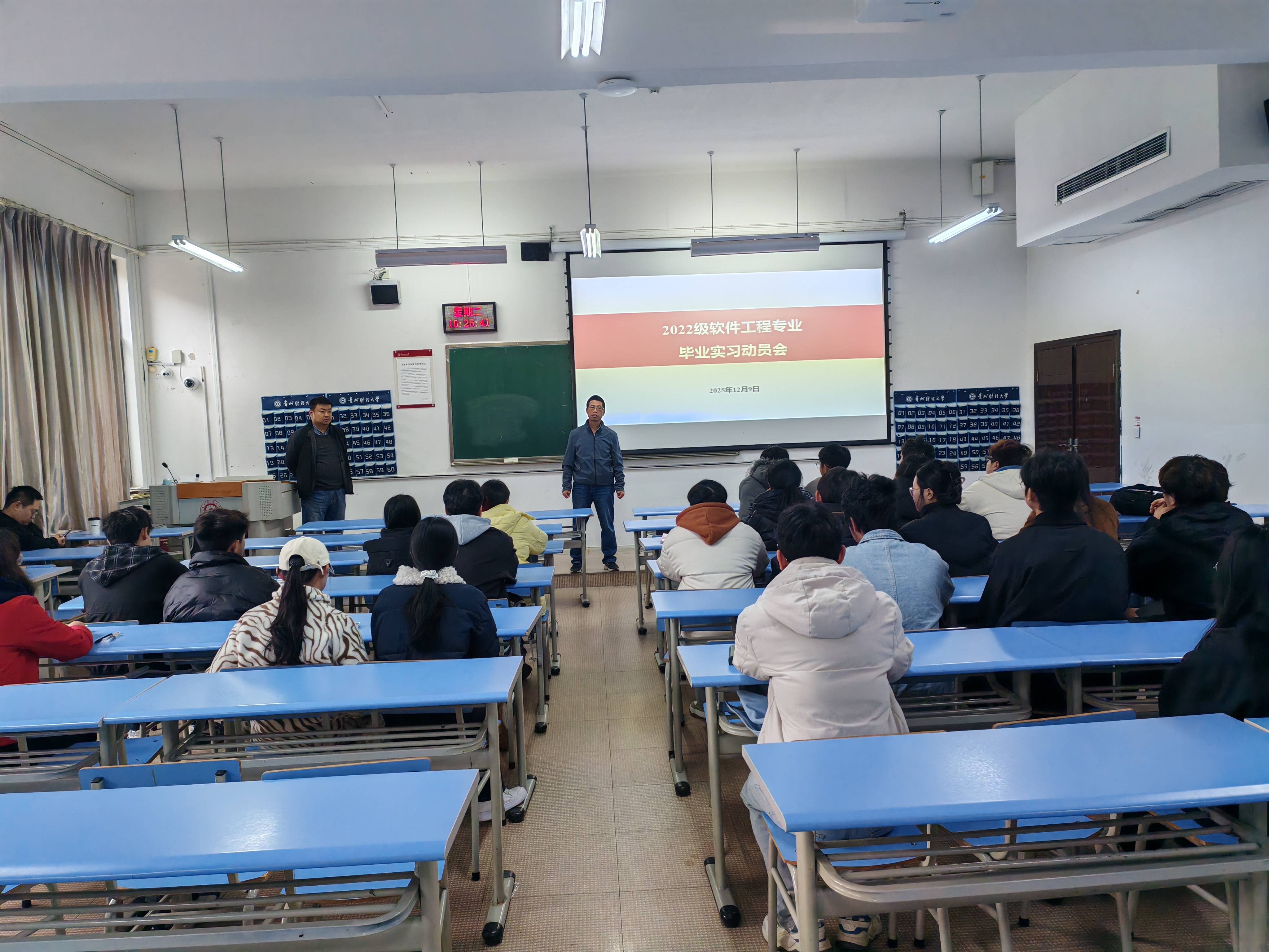 本网讯:(张骏 图文报道)为保障毕业实习工作顺利推进,3044永利集团有限公司信息工程系于2025年12月9日召开2022级实习动员会。会议由系副主任马思根主持,协助经理分管本科教学的刘海老师参加了此次动员会。在动员会上围绕实习目标、安全意识、实践能力等核心议题展开。
